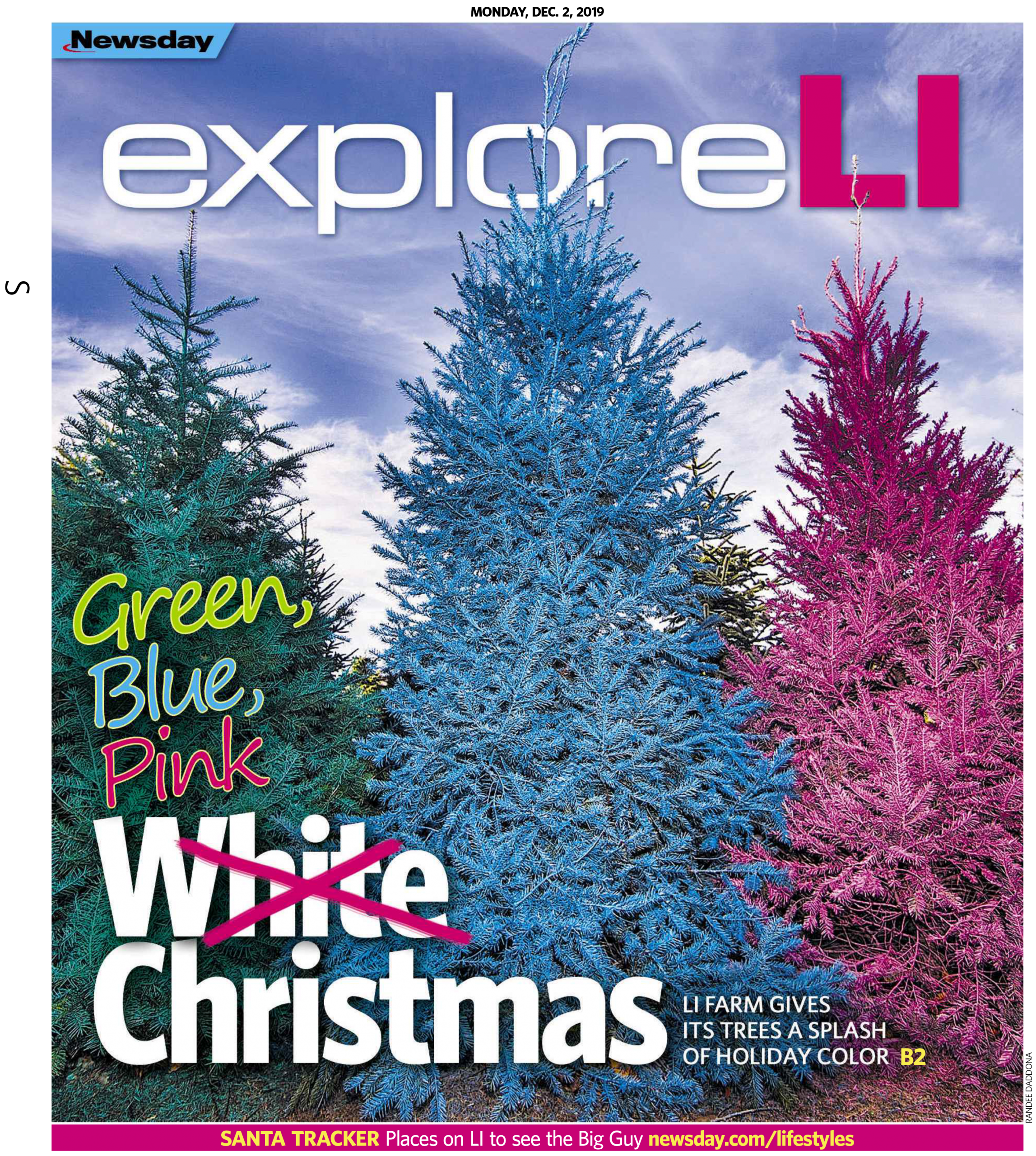 Blue, pink, purple — if you're hankering for a standout Christmas tree this year, you don't have to go artificial. Dart's Tree Farm in Southold is going out on a limb, joining a small number of tree farms around the county that have started spray-painting some of its live specimens in hopes the striking shades will dazzle customers looking for something different.